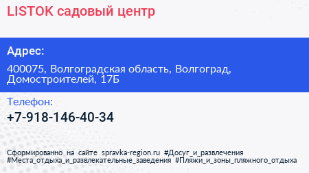 LISTOK, садовый центр по адресу 400075, Волгоградская область, Волгоград, Домостроителей, 17Б в дальнейшем Организация, размещена в следующих категориях: