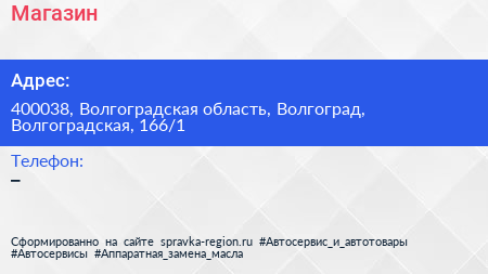 Магазин по адресу 400038, Волгоградская область, Волгоград, Волгоградская, 166/1 в дальнейшем Организация, размещена в следующих категориях: