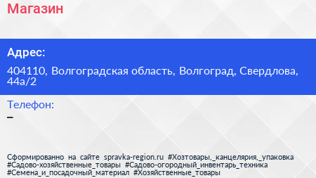 Магазин по адресу 404110, Волгоградская область, Волгоград, Свердлова, 44а/2 в дальнейшем Организация, размещена в следующих категориях: