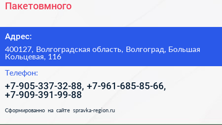 Пакетовмного по адресу 400127, Волгоградская область, Волгоград, Большая Кольцевая, 116 в дальнейшем Организация, размещена в следующих категориях: