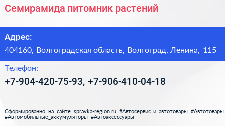 Семирамида, питомник растений по адресу 404160, Волгоградская область, Волгоград, Ленина, 115 в дальнейшем Организация, размещена в следующих категориях: