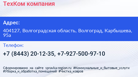 ТехКом, компания по адресу 404127, Волгоградская область, Волгоград, Карбышева, 95а в дальнейшем Организация, размещена в следующих категориях: