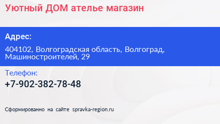 Уютный ДОМ, ателье-магазин по адресу 404102, Волгоградская область, Волгоград, Машиностроителей, 29 в дальнейшем Организация, размещена в следующих категориях: