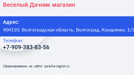 Веселый Дачник, магазин по адресу 404110, Волгоградская область, Волгоград, Кухаренко, 1/3 в дальнейшем Организация, размещена в следующих категориях: