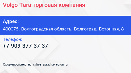 Volgo-Tara, торговая компания по адресу 400075, Волгоградская область, Волгоград, Бетонная, 8 в дальнейшем Организация, размещена в следующих категориях: