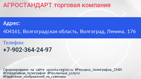 АГРОСТАНДАРТ, торговая компания по адресу 404161, Волгоградская область, Волгоград, Ленина, 176 в дальнейшем Организация, размещена в следующих категориях: