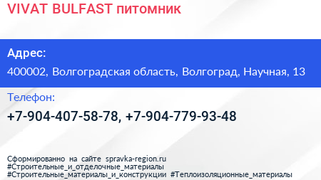 VIVAT BULFAST, питомник по адресу 400002, Волгоградская область, Волгоград, Научная, 13 в дальнейшем Организация, размещена в следующих категориях: