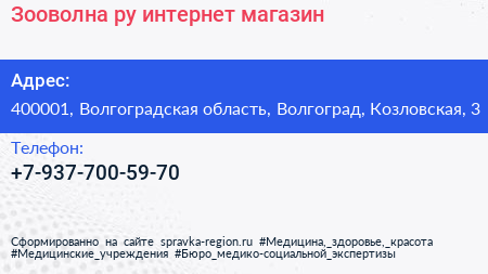 Зооволна.ру, интернет-магазин по адресу 400001, Волгоградская область, Волгоград, Козловская, 3 в дальнейшем Организация, размещена в следующих категориях: