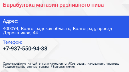 Барабулька, магазин разливного пива по адресу 400094, Волгоградская область, Волгоград, проезд Дорожников, 44 в дальнейшем Организация, размещена в следующих категориях: