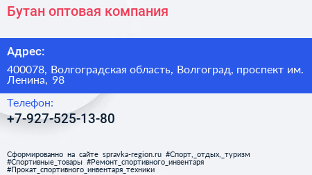 Бутан, оптовая компания по адресу 400078, Волгоградская область, Волгоград, проспект им. Ленина, 98 в дальнейшем Организация, размещена в следующих категориях: