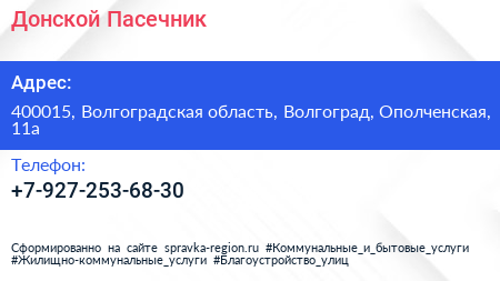 Донской Пасечник по адресу 400015, Волгоградская область, Волгоград, Ополченская, 11а в дальнейшем Организация, размещена в следующих категориях: