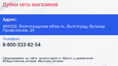 Дубки, сеть магазинов по адресу 404102, Волгоградская область, Волгоград, бульвар Профсоюзов, 24 в дальнейшем Организация, размещена в следующих категориях: