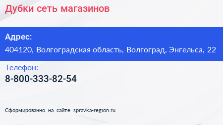 Дубки, сеть магазинов по адресу 404120, Волгоградская область, Волгоград, Энгельса, 22 в дальнейшем Организация, размещена в следующих категориях: