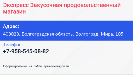 Экспресс-Закусочная, продовольственный магазин по адресу 403023, Волгоградская область, Волгоград, Мира, 105 в дальнейшем Организация, размещена в следующих категориях: