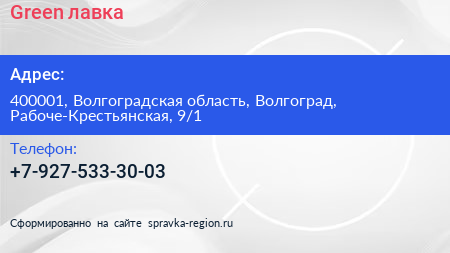 Green лавка по адресу 400001, Волгоградская область, Волгоград, Рабоче-Крестьянская, 9/1 в дальнейшем Организация, размещена в следующих категориях: