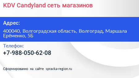KDV Candyland, сеть магазинов по адресу 400040, Волгоградская область, Волгоград, Маршала Ерёменко, 5Б в дальнейшем Организация, размещена в следующих категориях: