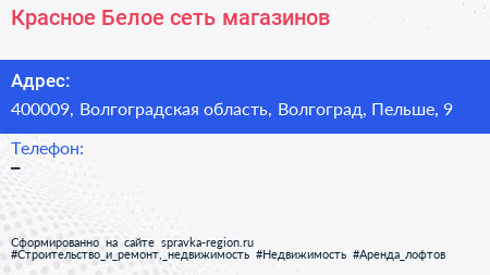 Красное & Белое, сеть магазинов по адресу 400009, Волгоградская область, Волгоград, Пельше, 9 в дальнейшем Организация, размещена в следующих категориях:
