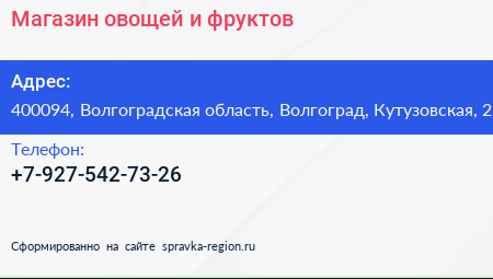 Магазин овощей и фруктов по адресу 400094, Волгоградская область, Волгоград, Кутузовская, 2 в дальнейшем Организация, размещена в следующих категориях: