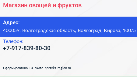 Магазин овощей и фруктов по адресу 400059, Волгоградская область, Волгоград, Кирова, 100/5 в дальнейшем Организация, размещена в следующих категориях: