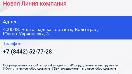 Новая Линия, компания по адресу 400048, Волгоградская область, Волгоград, Южно-Украинская, 3 в дальнейшем Организация, размещена в следующих категориях: