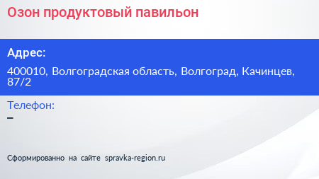 Озон, продуктовый павильон по адресу 400010, Волгоградская область, Волгоград, Качинцев, 87/2 в дальнейшем Организация, размещена в следующих категориях: