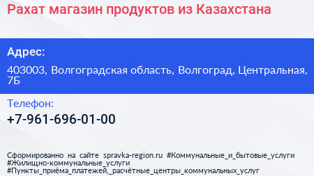 Рахат, магазин продуктов из Казахстана по адресу 403003, Волгоградская область, Волгоград, Центральная, 7Б в дальнейшем Организация, размещена в следующих категориях: