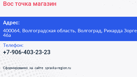 Вос.точка, магазин по адресу 400064, Волгоградская область, Волгоград, Рихарда Зорге, 46а в дальнейшем Организация, размещена в следующих категориях: