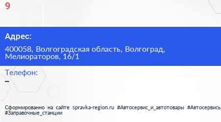 №9 по адресу 400058, Волгоградская область, Волгоград, Мелиораторов, 16/1 в дальнейшем Организация, размещена в следующих категориях:
