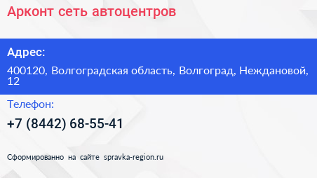 Арконт, сеть автоцентров по адресу 400120, Волгоградская область, Волгоград, Неждановой, 12 в дальнейшем Организация, размещена в следующих категориях: