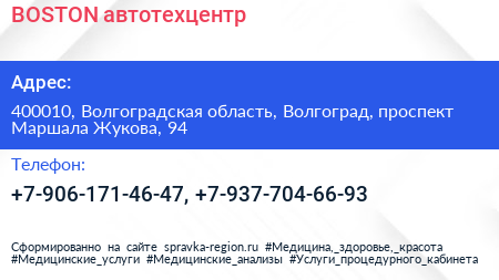 BOSTON, автотехцентр по адресу 400010, Волгоградская область, Волгоград, проспект Маршала Жукова, 94 в дальнейшем Организация, размещена в следующих категориях:
