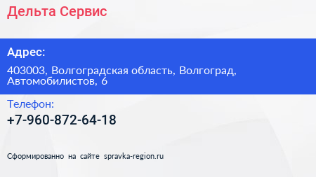 Дельта-Сервис по адресу 403003, Волгоградская область, Волгоград, Автомобилистов, 6 в дальнейшем Организация, размещена в следующих категориях:
