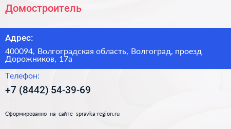 Домостроитель по адресу 400094, Волгоградская область, Волгоград, проезд Дорожников, 17а в дальнейшем Организация, размещена в следующих категориях: