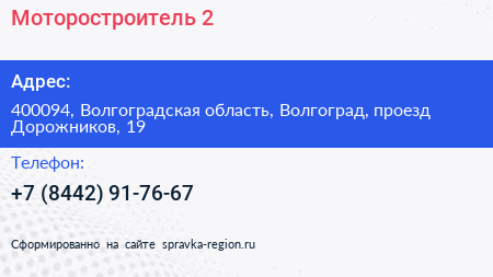 Моторостроитель-2 по адресу 400094, Волгоградская область, Волгоград, проезд Дорожников, 19 в дальнейшем Организация, размещена в следующих категориях: