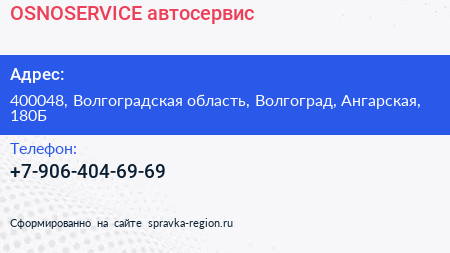 OSNOSERVICE, автосервис по адресу 400048, Волгоградская область, Волгоград, Ангарская, 180Б в дальнейшем Организация, размещена в следующих категориях: