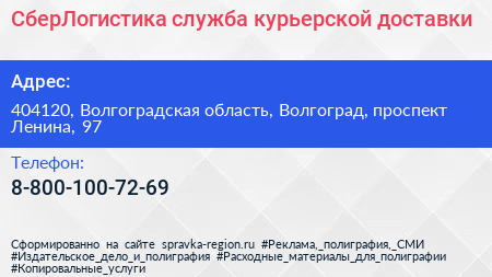 СберЛогистика, служба курьерской доставки по адресу 404120, Волгоградская область, Волгоград, проспект Ленина, 97 в дальнейшем Организация, размещена в следующих категориях: