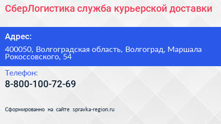 СберЛогистика, служба курьерской доставки по адресу 400050, Волгоградская область, Волгоград, Маршала Рокоссовского, 54 в дальнейшем Организация, размещена в следующих категориях: