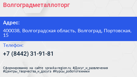 Волгоградметаллоторг по адресу 400038, Волгоградская область, Волгоград, Портовская, 15 в дальнейшем Организация, размещена в следующих категориях:
