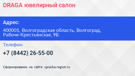 DRAGA, ювелирный салон по адресу 400001, Волгоградская область, Волгоград, Рабоче-Крестьянская, 9Б в дальнейшем Организация, размещена в следующих категориях: