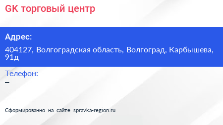 GK, торговый центр по адресу 404127, Волгоградская область, Волгоград, Карбышева, 91д в дальнейшем Организация, размещена в следующих категориях: