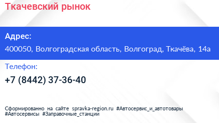 Ткачевский рынок по адресу 400050, Волгоградская область, Волгоград, Ткачёва, 14а в дальнейшем Организация, размещена в следующих категориях: