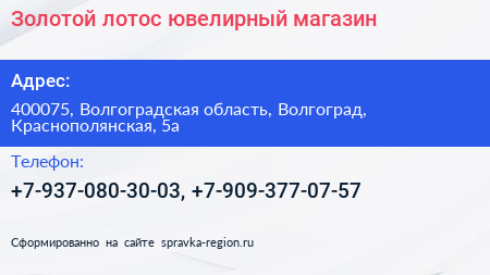 Золотой лотос, ювелирный магазин по адресу 400075, Волгоградская область, Волгоград, Краснополянская, 5а в дальнейшем Организация, размещена в следующих категориях: