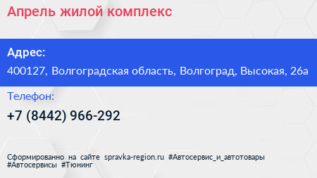 Апрель, жилой комплекс по адресу 400127, Волгоградская область, Волгоград, Высокая, 26а в дальнейшем Организация, размещена в следующих категориях: