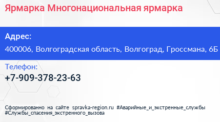 Ярмарка Многонациональная, ярмарка по адресу 400006, Волгоградская область, Волгоград, Гроссмана, 6Б в дальнейшем Организация, размещена в следующих категориях: