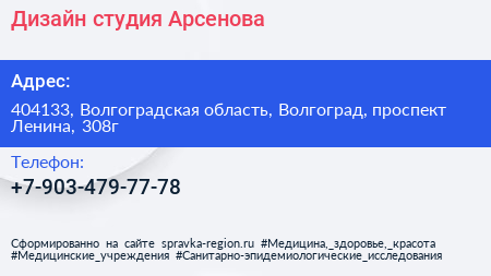 Дизайн-студия Арсенова по адресу 404133, Волгоградская область, Волгоград, проспект Ленина, 308г в дальнейшем Организация, размещена в следующих категориях:
