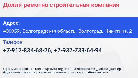 Долли, ремотно-строительная компания по адресу 400059, Волгоградская область, Волгоград, Никитина, 2 в дальнейшем Организация, размещена в следующих категориях: