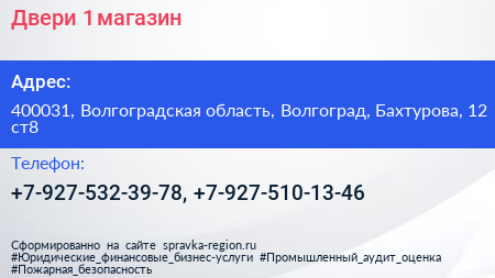 Двери №1, магазин по адресу 400031, Волгоградская область, Волгоград, Бахтурова, 12 ст8 в дальнейшем Организация, размещена в следующих категориях: