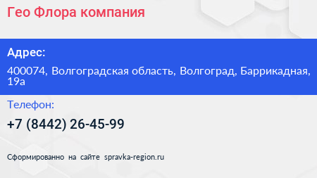 Гео-Флора, компания по адресу 400074, Волгоградская область, Волгоград, Баррикадная, 19а в дальнейшем Организация, размещена в следующих категориях: