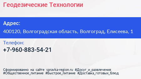 Геодезические Технологии по адресу 400120, Волгоградская область, Волгоград, Елисеева, 1 в дальнейшем Организация, размещена в следующих категориях: