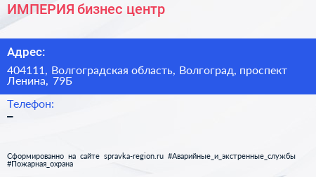 ИМПЕРИЯ, бизнес-центр по адресу 404111, Волгоградская область, Волгоград, проспект Ленина, 79Б в дальнейшем Организация, размещена в следующих категориях: