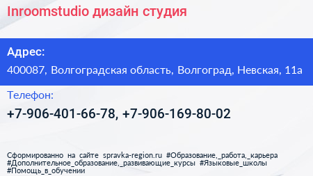 Inroomstudio, дизайн-студия по адресу 400087, Волгоградская область, Волгоград, Невская, 11а в дальнейшем Организация, размещена в следующих категориях: